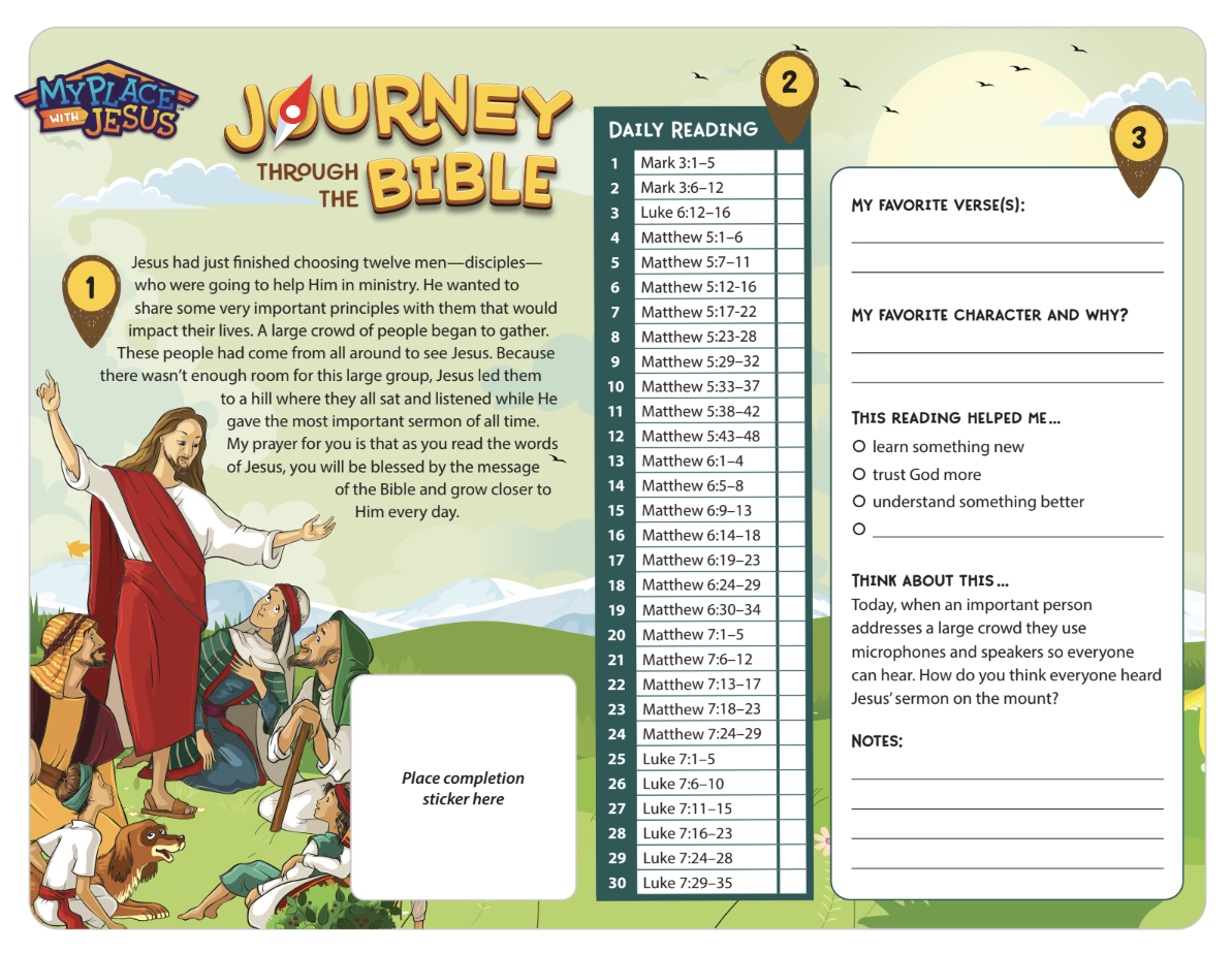 Begin your Journey today, and earn a special sticker at the completion of every monthly Bible reading!